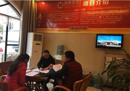 圖為業(yè)主正在簽訂購(gòu)房合同