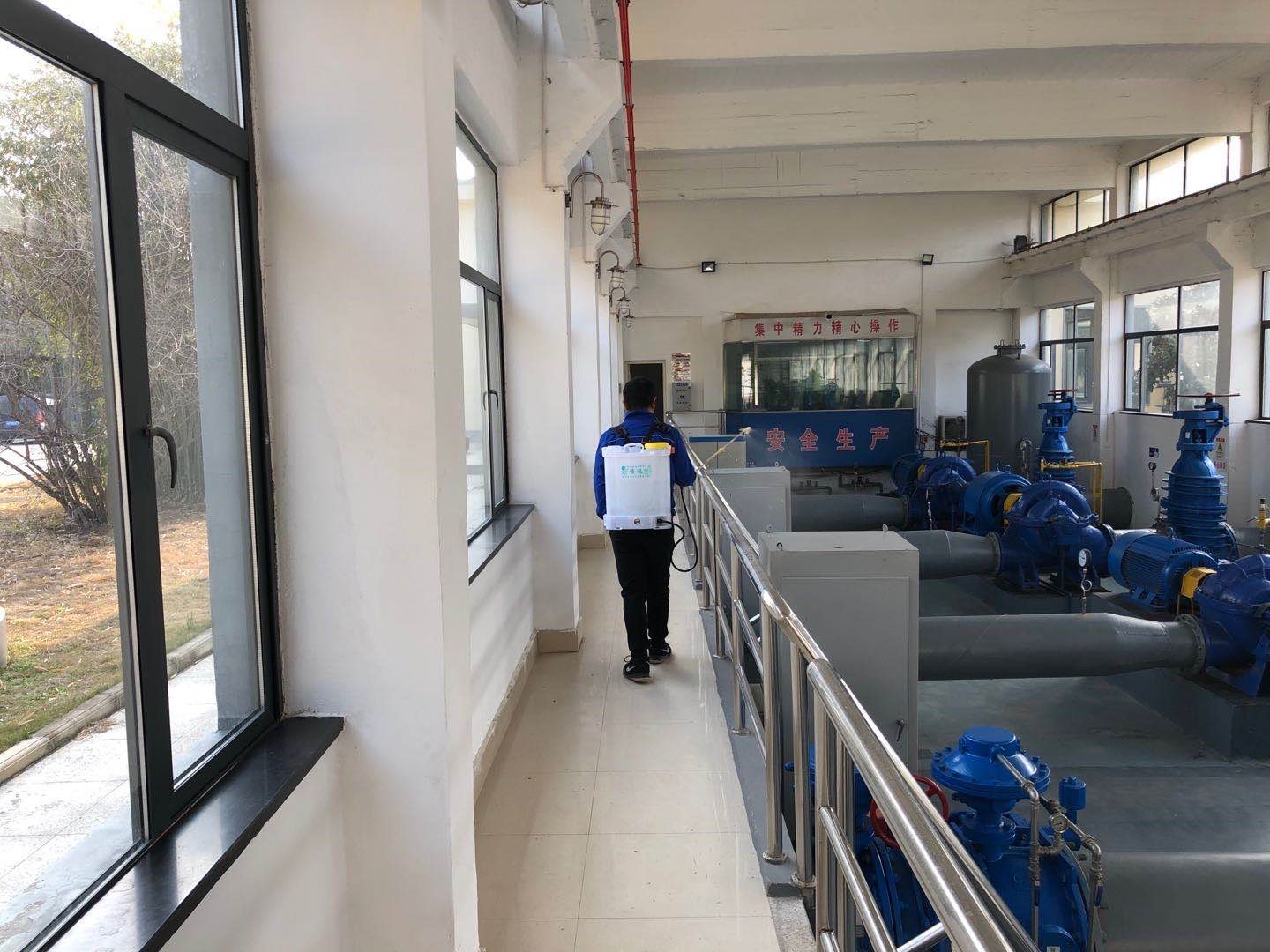 二是加強辦公區(qū)域消毒工作。每天安排專人對辦公室、泵房、維修車間、食堂等區(qū)域進行消毒,并通風(fēng)30分鐘以上。