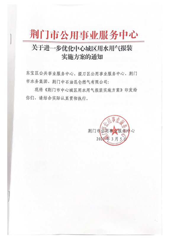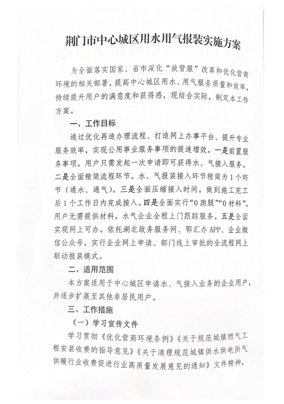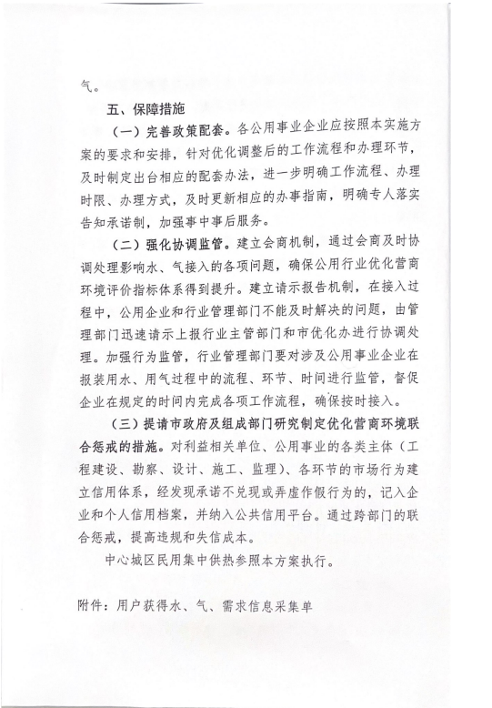 關(guān)于進一步優(yōu)化中心城區(qū)用水用氣報裝實施方案的通知