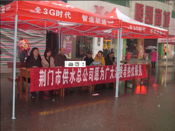 3月15日,市供水總公司黨委書記、副總經(jīng)理陳永根率客服中心、二供所等窗口人員,冒雨在中天街開展消費日活動,宣傳供水政策知識、現(xiàn)場接受用戶咨詢、認真開展服務(wù)。