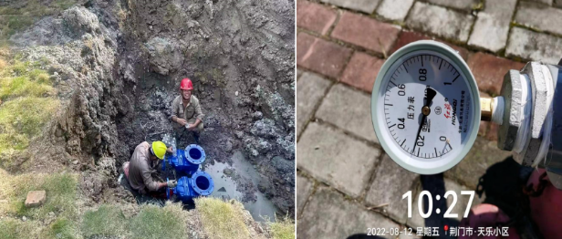 迎春大道臨時加壓設施3天半完工,天樂小區(qū)水壓從0.08MPa恢復到0.23MPa。