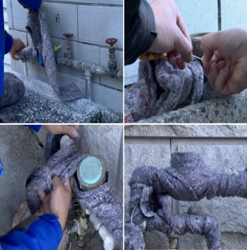集團及時更新匯總表務相關(guān)信息,安排專人對容易上凍或保溫材料缺失的裸露管道、高層小區(qū)管道井上下隔層空隙處加塞保溫棉,防止因樓層串風或漏水造成冰凍的損失。同時,我們在樓道窗戶、消防門等設施處張貼“隨手關(guān)閉”提示語,提醒用戶養(yǎng)成隨手關(guān)門窗的習慣,進一步預防冰凍情況發(fā)生。