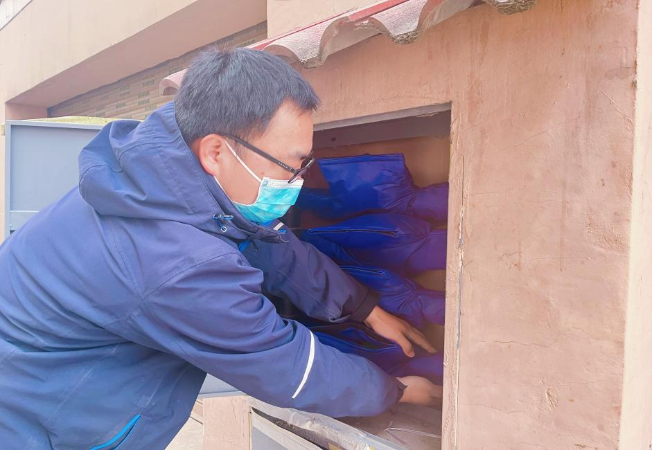 [圖為工作人員添加水表防護套]