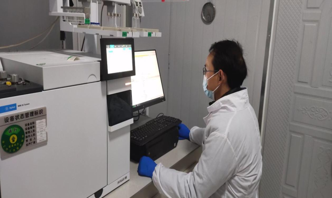 圖為詠泉水質(zhì)檢測有限公司嚴偉正在實驗中