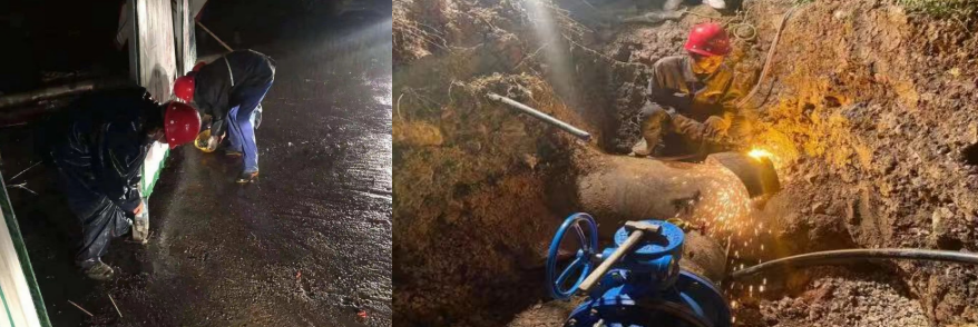 圖為集團(tuán)職工搶修、施工現(xiàn)場(chǎng)