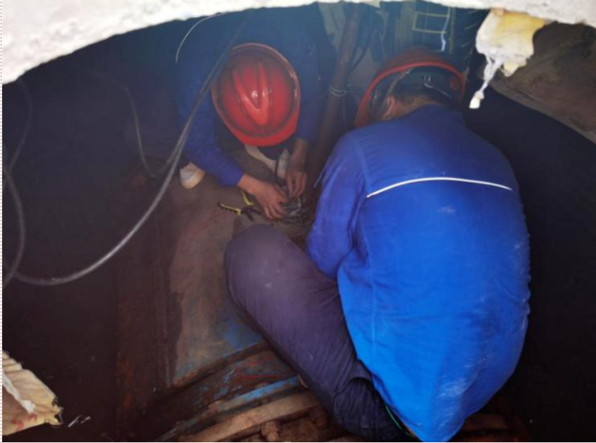 圖為正在維修流量計信號線