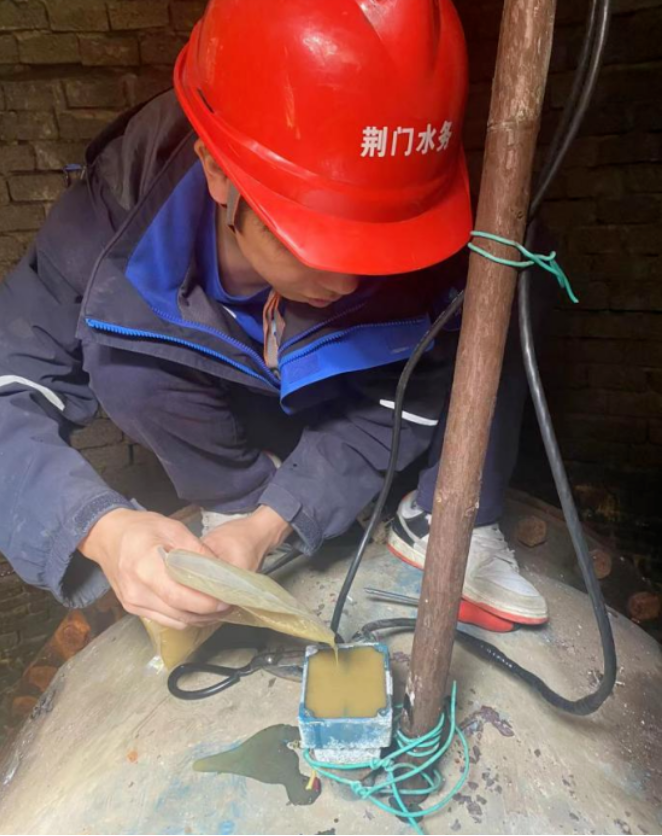 廠領(lǐng)導(dǎo)在綜合評估后,同意其思路,并作安全操作提醒。雖早有心理準備,但在打開接線盒后的瞬間,李為龍等人還是倒吸一口涼氣。他們發(fā)現(xiàn)整個接線盒內(nèi)部被深色不透明的膠體充滿,無法掌握線路走向。短暫思索后,他們發(fā)揮水務(wù)人不怕苦、能戰(zhàn)斗的精神,嘗試按廠家給出建議,用熱風(fēng)槍加熱密封膠,但事與愿違,效果并不理想,密封膠沒有自動融化流出。李為龍“改巧為笨”,在加熱的同時用小刀清理變軟的膠體。該處操作空間狹小,且不能損壞內(nèi)部的線路和接線端子,必須凝神聚力,是個“精細活”“體力活”。即便同事們輪番上陣,依然個個汗如雨下。功夫不負有心人,眾人合力熬過“漫長的”4小時,最終完成了既定任務(wù)。