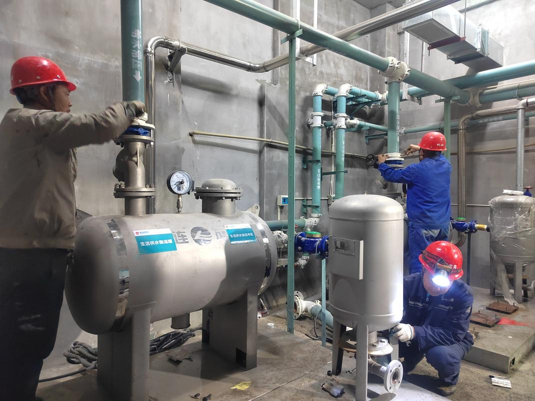 圖為工作人員對明月小區(qū)泵房進(jìn)行改造