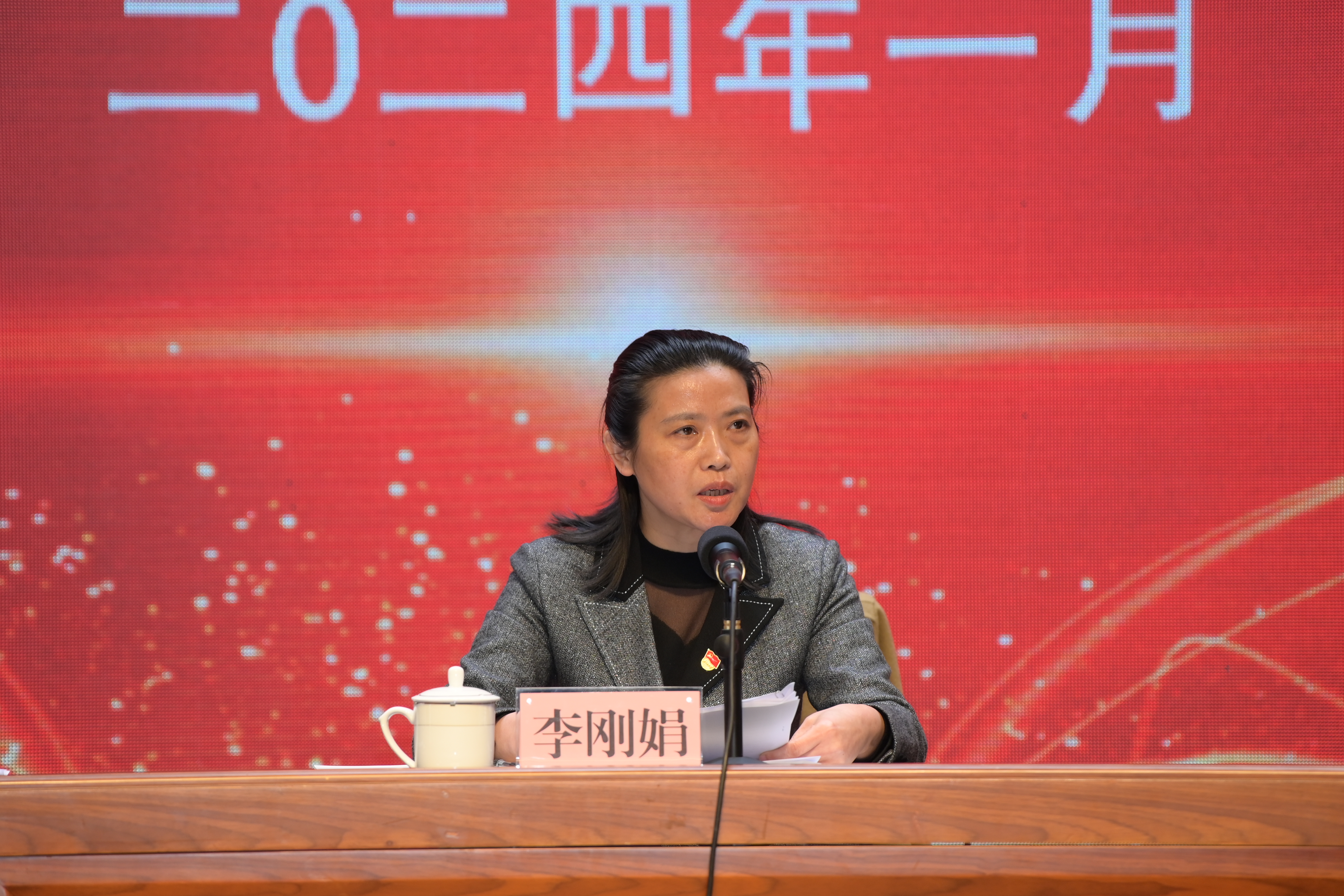 圖為市國資委黨委委員、工會(huì)主席李剛娟講話