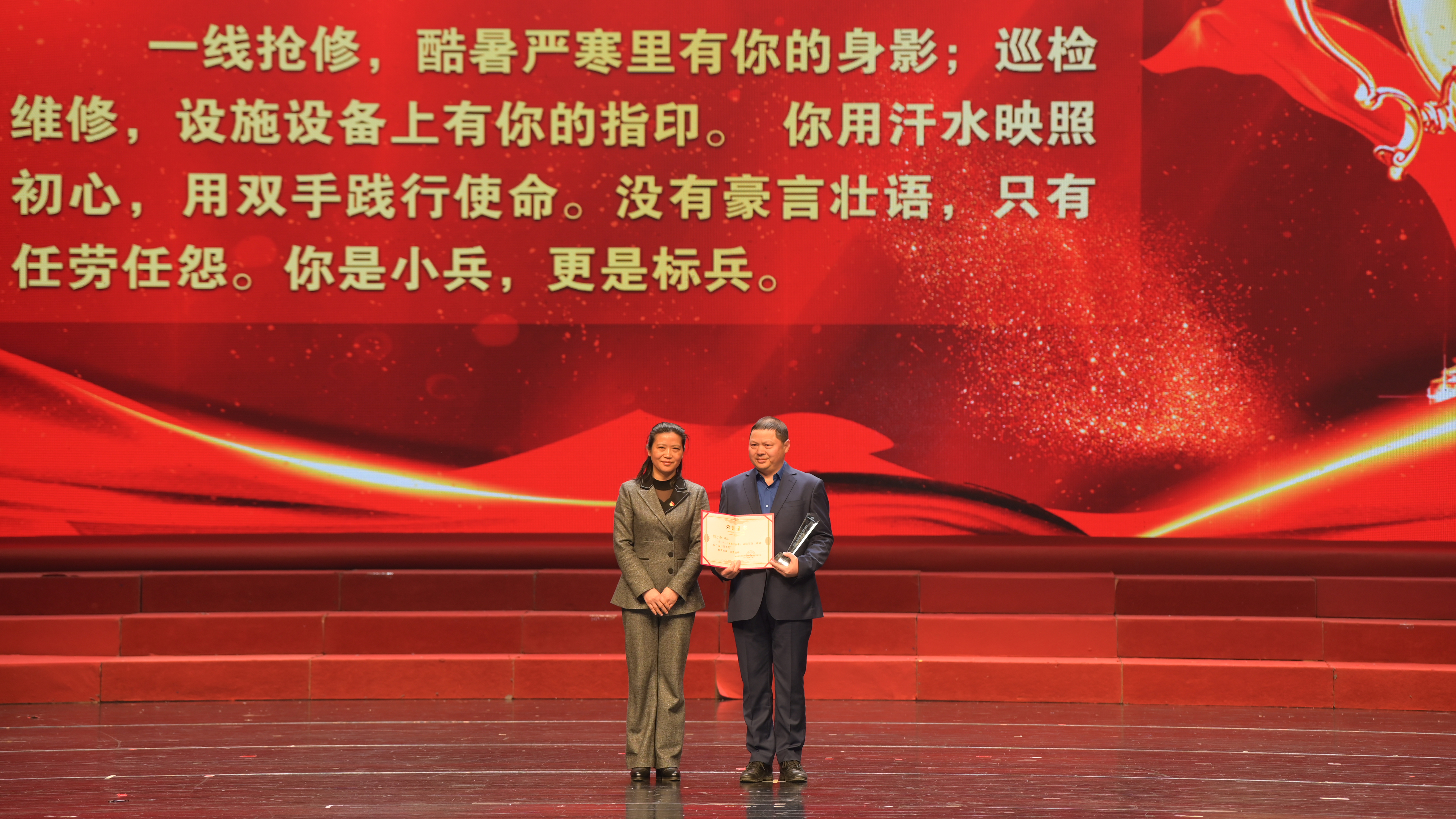 會(huì)后,在荊門劇院舉辦了主題為“人水和諧 幸福萬家”的2022-2023年度典型模范人物頒獎(jiǎng)典禮晚會(huì)。本次晚會(huì)由集團(tuán)高層領(lǐng)導(dǎo)領(lǐng)銜出演,115名干部職工悉數(shù)登場,創(chuàng)歷年參演人數(shù)新高。9個(gè)節(jié)目,涵蓋歌舞、說唱、走秀,類型豐富、互動(dòng)活躍,為大家?guī)硪粓雠c眾不同的視覺盛宴,達(dá)到預(yù)期效果。