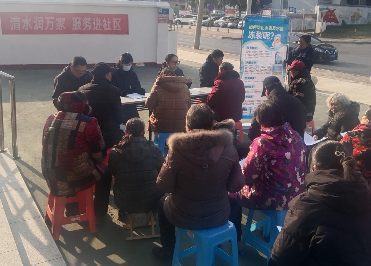 12月20日上午,水務(wù)集團(tuán)送服務(wù)進(jìn)掇刀區(qū)楊灣社區(qū),開展水表防凍保暖宣傳活動(dòng),確保居民冬天用水正常。