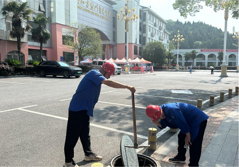 排水公司對荊門中心城區(qū)各考點(diǎn)學(xué)校周邊展開拉網(wǎng)式隱患排查工作,及時消除安全隱患,確保排水設(shè)施完好。為了應(yīng)對高考期間可能遇到的下雨積水問題,提前對考點(diǎn)周邊道路雨水管網(wǎng)進(jìn)行全面清疏,并安排重點(diǎn)點(diǎn)位值班值守,全力保障高考考生出行安全。