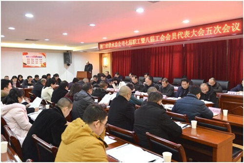 1月2日下午,市供水總公司七屆職工暨八屆工會(huì)會(huì)員代表大會(huì)五次會(huì)議勝利召開。大會(huì)聽取并審議了2017年度公司工作報(bào)告、2017年度工會(huì)委員會(huì)工作報(bào)告、2017年度財(cái)務(wù)預(yù)算執(zhí)行和2018年財(cái)務(wù)預(yù)算草案編制報(bào)告、2017年度工會(huì)經(jīng)費(fèi)執(zhí)行和2018年工會(huì)經(jīng)費(fèi)預(yù)算情況報(bào)告、七屆職工暨八屆工會(huì)會(huì)員代表大會(huì)三次會(huì)議職工代表提案辦理情況報(bào)告及本次會(huì)議征集職工代表提案報(bào)告。公司黨委成員和職工代表、工會(huì)會(huì)員代表、列席代表共100余人參加會(huì)議。