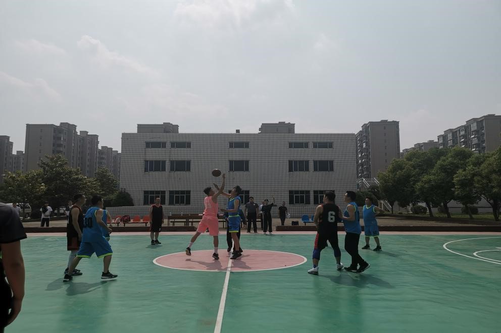 首場籃球比賽在荊襄供水隊和維修公司隊之間展開。賽場上,哨響聲起。球員們帥氣的控球,精準的投籃,默契的配合,漂亮的反攻……每一回合的激烈對抗都引起場外觀眾的歡呼和掌聲。場外的觀眾也隨著比賽的每一次進球、搶斷、失誤而或興奮、或激動、或惋惜。
