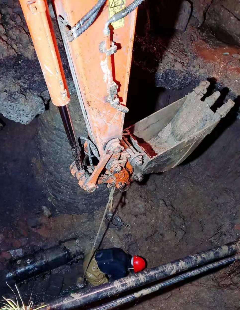 1月28日8時,白云大道農(nóng)行家屬區(qū)門口DN100管道爆裂,因在人行道上,地下管線交錯復(fù)雜,不能用工程機(jī)械開挖,黃磊帶領(lǐng)班組人員硬是挨著管線用手刨釬撬,人工開鑿出搶修坑,在連續(xù)奮戰(zhàn)3個小時后,趕在用水高峰期搶修完畢給用戶通水。這邊剛搶修完,那邊又接到值班電話通知建設(shè)街DN200管道漏水,如不及時搶修,在漏水失壓的情況下會造成大面積用戶無水,黃磊沒有一絲懈怠,立即組織人員、機(jī)械到現(xiàn)場,簡單吃了一桶泡面又投入到搶修工作中,搶修現(xiàn)場居民感動不已,紛紛送來手套、口罩、方便面等慰問品。下午3時,多輝農(nóng)產(chǎn)品市場因封路時挖機(jī)將DN50管道拉斷,考慮到已經(jīng)連續(xù)奮戰(zhàn)多時,公司領(lǐng)導(dǎo)準(zhǔn)備安排其它維修班組去搶修,其他隊伍集結(jié)需要時間會耽誤疫情控制,而且位處垃圾堆有感染風(fēng)險,黃磊主動請纓出戰(zhàn)。晚上22時,黃磊又接到出警電話,因楊家橋DN300管道爆裂,路上汪洋一片。他其實(shí)搶修完才到家一會,但黃磊沒有遲疑,立即聯(lián)系機(jī)械進(jìn)場,在班組微信群通知集結(jié)路線,沿路接人,在他的帶領(lǐng)下,從維修材料準(zhǔn)備到人員機(jī)械到位用了不到40分鐘,因開挖后形成的基坑深度達(dá)近5米,為保障人工深基坑作業(yè)安全,黃磊一刻也沒離開基坑,直到凌晨5時搶修完畢。